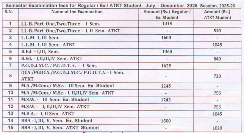 | कोर्स का प्रकार | नियमित, स्वाध्यायी, भूतपूर्व एवं ATKT |