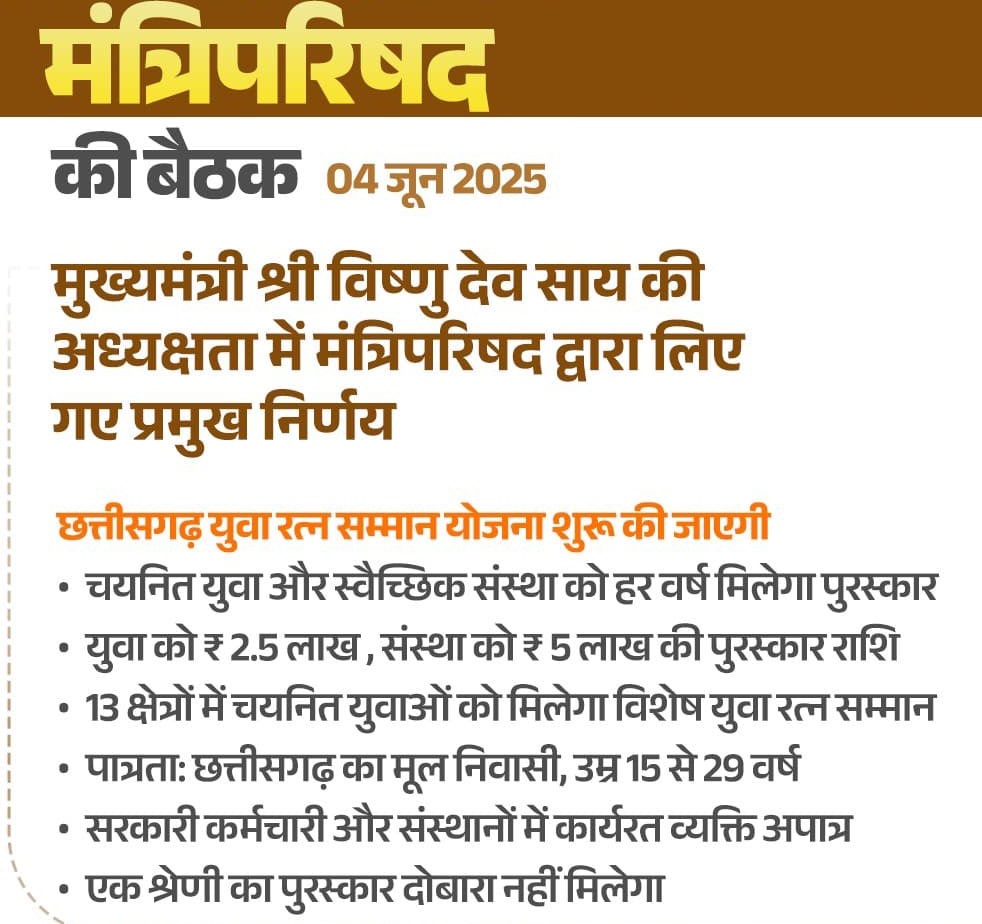 - CG Yuva Ratna Samman छत्तीसगढ़ युवा रत्न सम्मान 2025 के लिए आवेदन 30 नवंबर तक, जानें पूरी जानकारी।@Yuvaratna @award